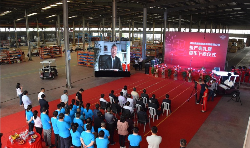 5月5日上午,在一串喜慶的鞭炮聲中,綠友集團(tuán)新能源車輛有限公司投產(chǎn)典禮暨首車下線儀式正式開始。