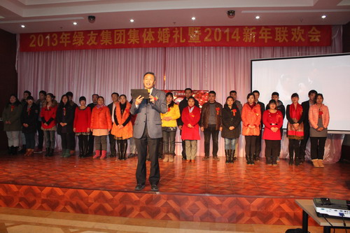 12月29日,“2013年綠友集團(tuán)集體婚禮暨2014年元旦聯(lián)歡會”在總部所在地附近的德濟(jì)緣酒店舉辦,總部人員和北京綠友園林、北京工廠的全體人員參加了活動;在李敏總裁的關(guān)心下,會務(wù)組人員還特別邀請了8名退休員工前來參加活動。
