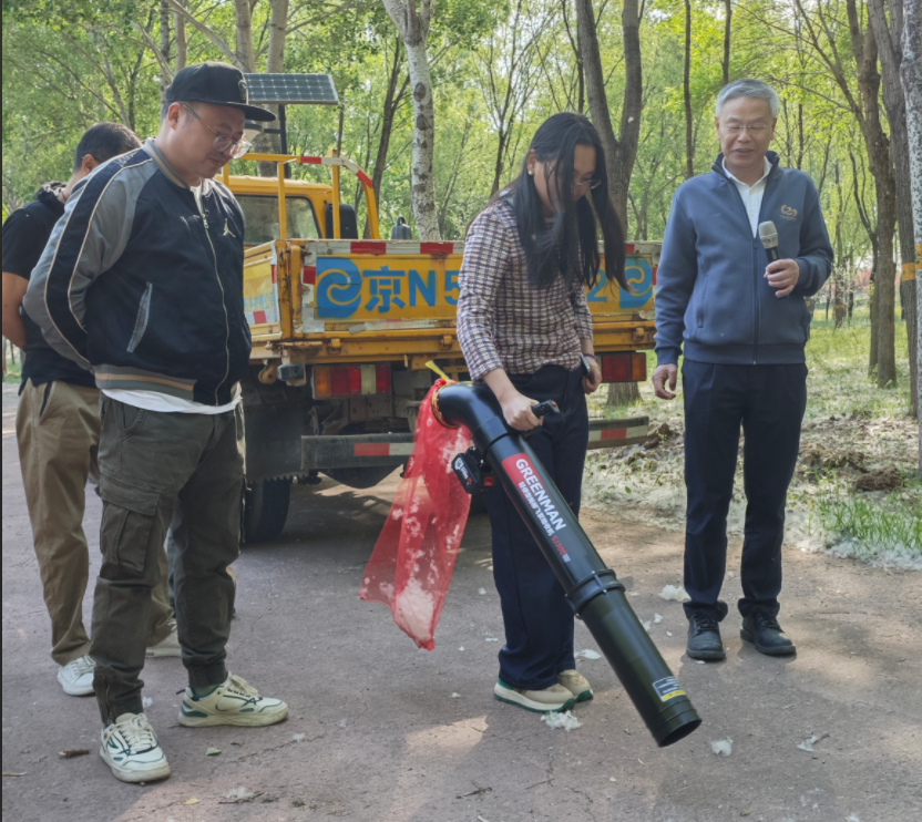 2025年4月29日,北京市園林綠化局在通州區(qū)舉行楊柳飛絮防治現(xiàn)場會。會上,北京市園林綠化局二級巡視員王小平介紹了北京市楊柳飛絮防治方案及取得的階段性成果,特別是對綠友集團(tuán)依托北京市科委項(xiàng)目完成的兩款防治產(chǎn)品-電動樹干打孔注藥機(jī)ZYJ15D和輕便型楊柳飛絮吸絮機(jī)SJ300D在飛絮防治中的作用表示高度認(rèn)可。綠友集團(tuán)總裁李敏現(xiàn)場介紹了兩款產(chǎn)品的研發(fā)情況、工作原理及產(chǎn)品特點(diǎn),并由工作人員現(xiàn)場進(jìn)行了實(shí)際操作演示,得到了參會領(lǐng)導(dǎo)、同行及使用單位的一致認(rèn)可?,F(xiàn)場會同時(shí)進(jìn)行了首批輕便型楊柳飛絮吸絮機(jī)SJ300D的集中發(fā)放儀式,來自包括中央黨校園林處、北海公園、頤和園、通州區(qū)園林綠化局、通州區(qū)城管委、國家植物園、北京安貞醫(yī)院、經(jīng)開區(qū)生態(tài)環(huán)境管理局、西城環(huán)衛(wèi)等在內(nèi)的近20家單位現(xiàn)場領(lǐng)取了綠友集團(tuán)研發(fā)生產(chǎn)的SJ300D型輕便型楊柳飛絮吸絮機(jī),期待綠友吸絮機(jī)能夠在楊柳飛絮防治工作中起到重要作用。