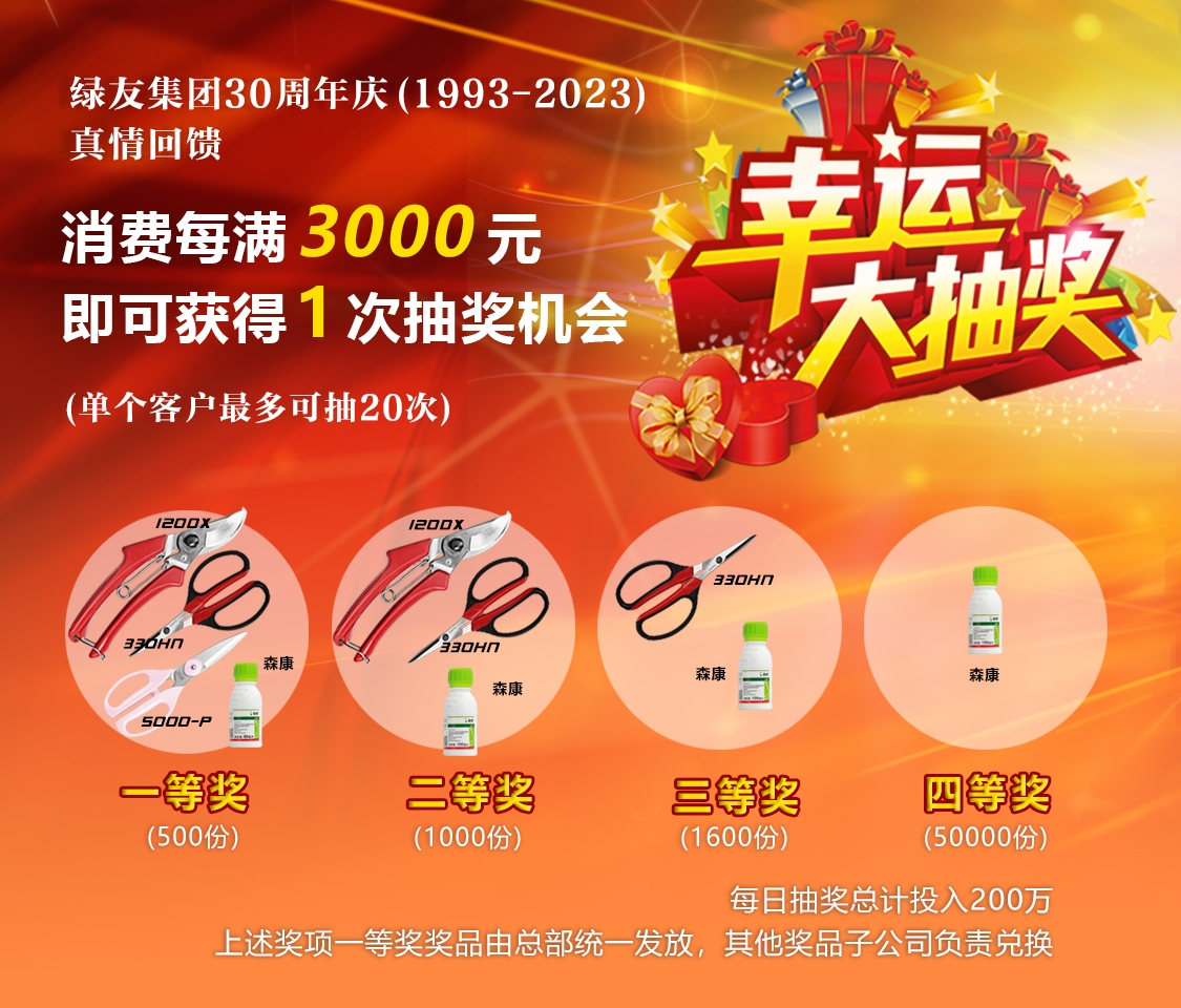 綠友集團(tuán)30周年慶(1993-2023)真情回饋消費每滿3000元即可獲得1次抽獎機(jī)會