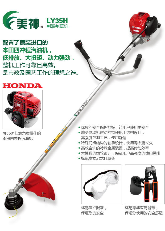 美神四沖程割灌割草機搭載了本田四沖程GX35強勁動力