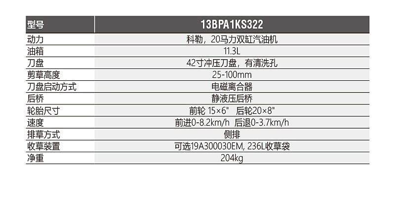 1. 科勒20馬力雙缸風冷汽油機,油箱11.3L