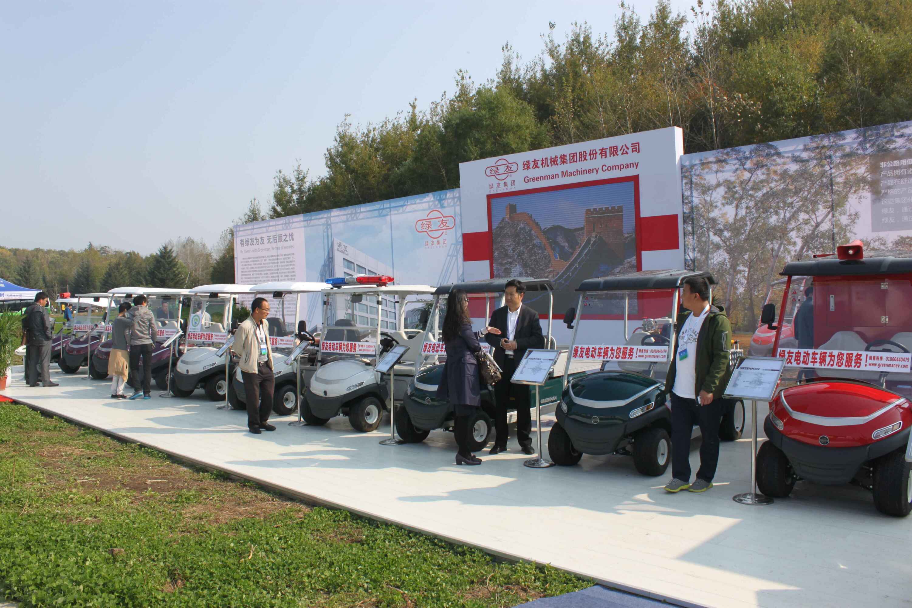 此次森林旅游節(jié)期間全國各省市設(shè)立了大型展臺展示推薦各自省份森林旅游資源和招商引資項目。與林業(yè)和旅游業(yè)行業(yè)密切相關(guān)的企業(yè)全方位展示公司形象和產(chǎn)品。以“圍繞綠色做文章,圍繞綠色謀發(fā)展”的綠友集團盛裝參展,展臺面積280平方米,展品包括林業(yè)樹木處理設(shè)備、草坪養(yǎng)護設(shè)備及Greenman 全系電動車輛登臺亮相。綠友集團的展臺及高品質(zhì)產(chǎn)品引人駐足,蒞臨展位的各級領(lǐng)導仔細了解產(chǎn)品特性和功能,并在展臺表達了合作意向。全國政協(xié)副主席羅富和、國家林業(yè)局局長張建龍、吉林省副省長隋忠誠等領(lǐng)導蒞臨綠友展臺,綠友集團高管李玉潔詳細向羅主席等領(lǐng)導介紹了綠友集團和主要產(chǎn)品,羅主席等領(lǐng)導對綠友集團對于綠色產(chǎn)業(yè)的支持表達了肯定,對綠友集團堅持走自主研發(fā)生產(chǎn)之路表示贊許和鼓勵