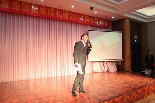 12月29日,“2013年綠友集團(tuán)集體婚禮暨2014年元旦聯(lián)歡會”在總部所在地附近的德濟(jì)緣酒店舉辦,總部人員和北京綠友園林、北京工廠的全體人員參加了活動;在李敏總裁的關(guān)心下,會務(wù)組人員還特別邀請了8名退休員工前來參加活動。
