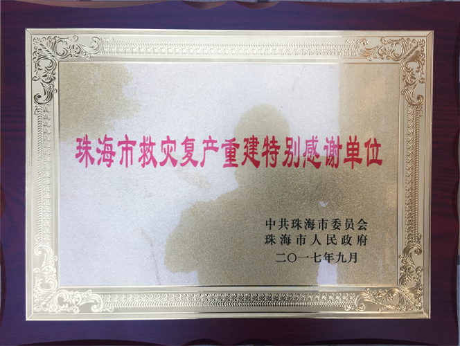 9月,綠友集團(tuán)得到了中共珠海市委員會、珠海市人民政府的表彰,被評為“珠海市救災(zāi)重建特別感謝單位”。