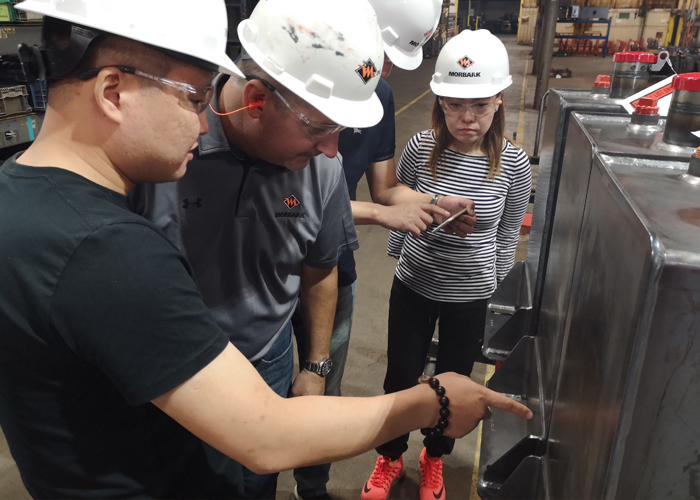在木霸克國際市場總經(jīng)理Curt 先生的帶領(lǐng)下,綠友一行進入木霸克的生產(chǎn)車間,了解每一臺高品質(zhì)產(chǎn)品是如何生產(chǎn)出來。從生產(chǎn)計劃,金屬加工,材料分選,品質(zhì)控制,現(xiàn)場管理,配件存儲,人員培訓(xùn),木霸克工廠毫無保留展示每一處生產(chǎn)細節(jié),而依靠這些細節(jié)的管控才能造就木霸克的品質(zhì)和市場認可。參觀期間,Curt特意強調(diào)了材料分選是木霸克設(shè)備和其他品牌產(chǎn)品的重要區(qū)別,木霸克針對每一部位應(yīng)用和受力不用,在材料選擇都會進行區(qū)分,例如進料口下方的金屬板面由于需要經(jīng)受長時間撞擊,這塊板面的選擇使用和美國坦克裝甲相同材料,并以不同顏色區(qū)分開。當消費者購買設(shè)備時,面對不同品牌產(chǎn)品都是光鮮亮麗,而隱藏在漆層下面的細節(jié)決定他們之間的區(qū)別,發(fā)現(xiàn)這些細節(jié)的不同則需要深入生產(chǎn)車間,而這也是木霸克最希望客戶參觀他們生產(chǎn)的原因。