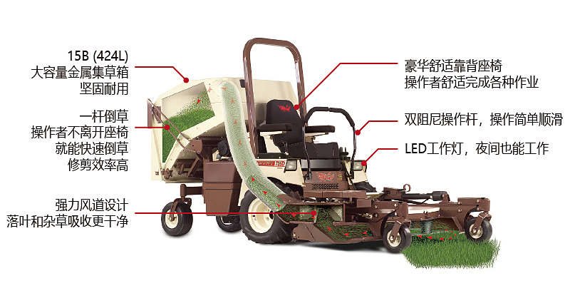 配置DURAMAX前置刀盤,厚重鋼材制造,具有強度高、壽命長,維護保養(yǎng)簡單等特點,氣流強勁,具有完美的修剪效果。